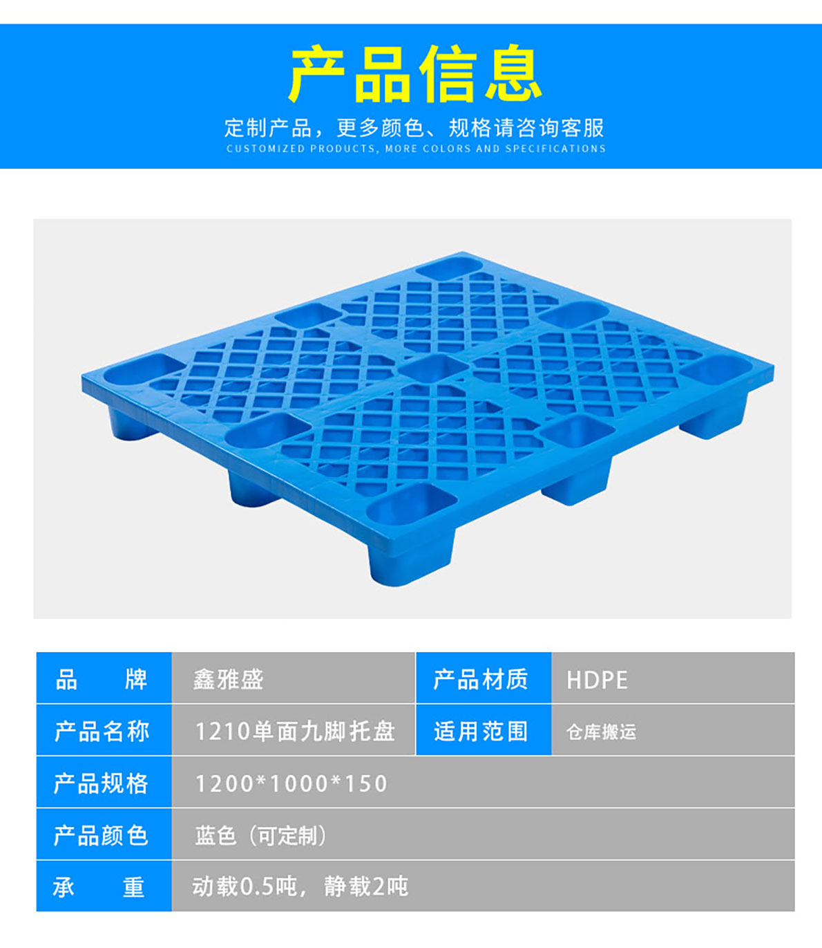 | 3 | 1210單面九腳 | 1200*1000*140 | 6.8 |